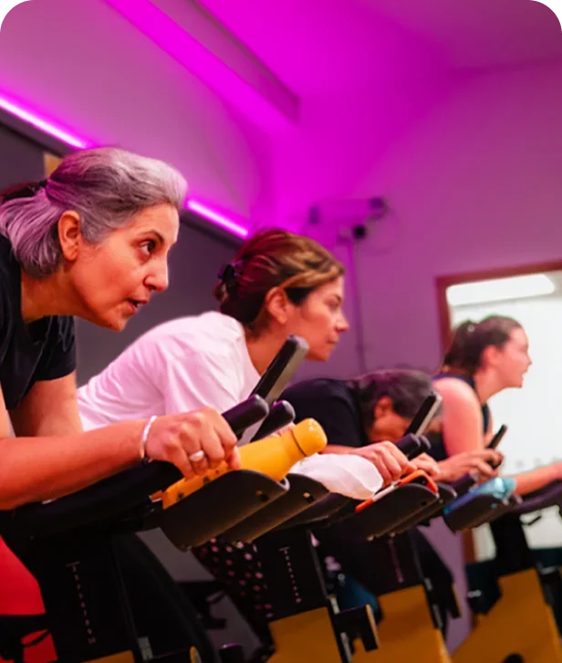 These classes are fast-paced sessions where groups ride stationary bikes to the beat. They are led by an instructor who directs different speeds and altitudes to simulate tough climbs and adrenaline-fuelled sprints through terrain and route challenges.